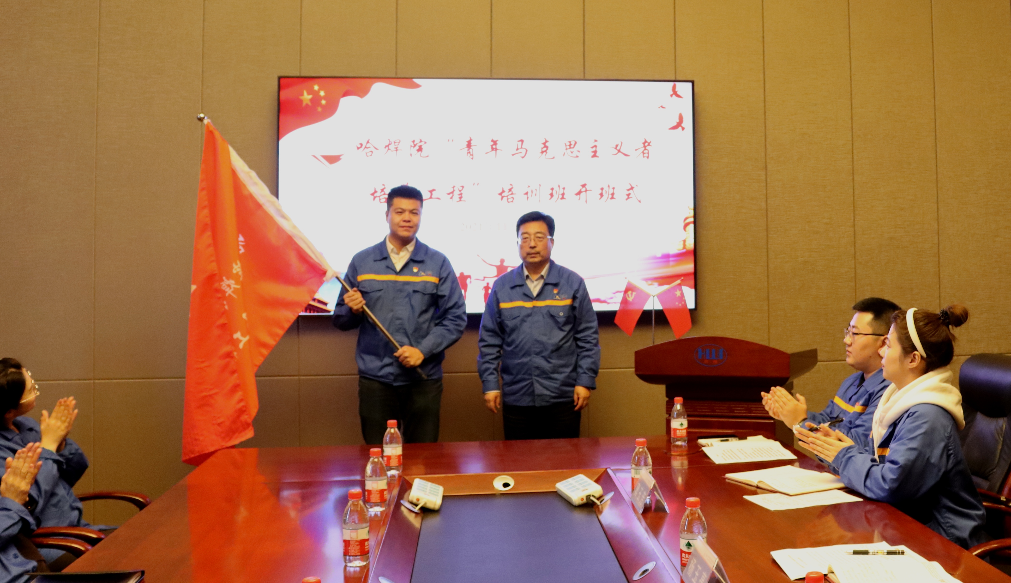 開班式在雄壯的國(guó)歌聲中拉開序幕,雷振同志介紹了“青馬工程”的歷程及重要意義,同時(shí)介紹了《哈焊院青年馬克思主義者培養(yǎng)工程實(shí)施方案》。班長(zhǎng)郝龍宇詳細(xì)介紹了《2021年哈焊院“青馬工程”培養(yǎng)計(jì)劃》。隨后,楊玉亭同志為“青馬工程”培訓(xùn)班授旗,學(xué)員代表烏彥全、付傲作表態(tài)發(fā)言,充分表達(dá)聽黨話、跟黨走,砥礪奮進(jìn)、激揚(yáng)青春,做堅(jiān)定的馬克思主義者的決心。