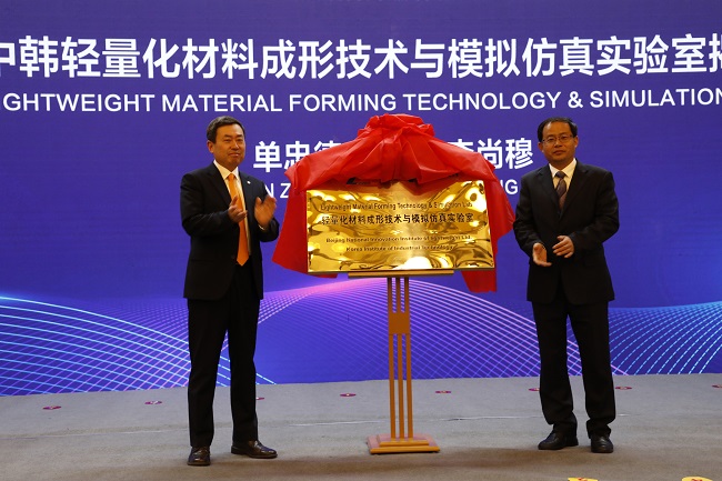 會(huì)上,單忠德副總經(jīng)理和李尚穆副院長共同為雙方共建 的“輕量化材料成形技術(shù)與模擬仿真實(shí)驗(yàn)室”揭牌。